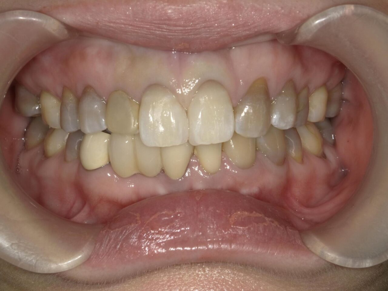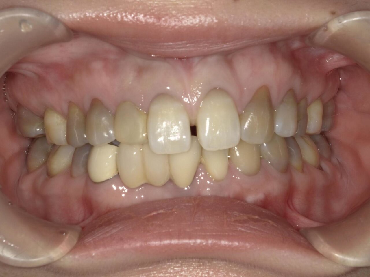 下の前歯の歯並びに注意しながら、上の前歯の隙間を埋めていきます。